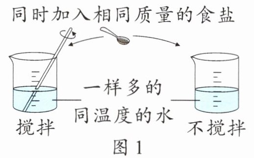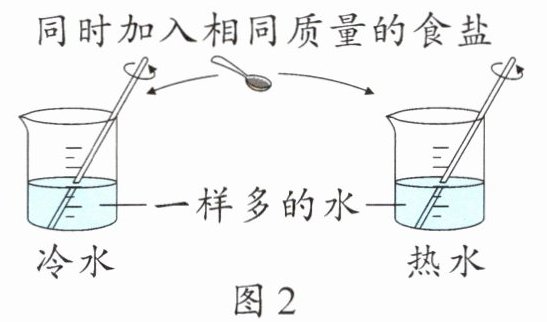 B.将两份相同质量的食盐分别同时加到冷水和热水中
