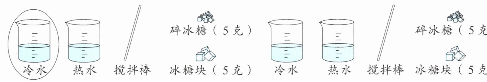 4 (金华金东区期末)请圈出研究溶解快慢与搅拌关系的实验材料。