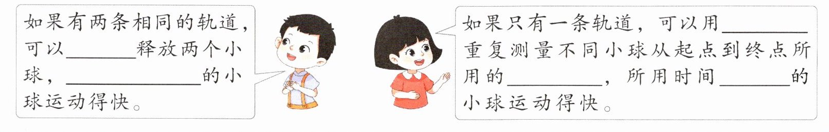 如果只有一条轨道,可以用______重复测量不同小球从起点到终点所用的______,所用时间______的小球运动得快。