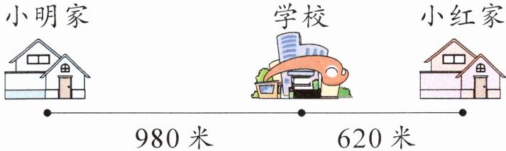 5 (温州瑞安市期末)小明和小红同时从家里出发步行去学校,两人恰好在校门口相遇,( )走得更快。