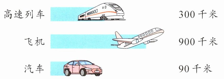 2 如图是各种交通工具通常情况下1小时行驶的距离。菲菲一家计划暑假去北京旅游,他们乘坐( )能最快到达北京。