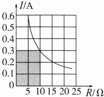 6. 在探究电流与电阻的关系的实验中,根据实验数据绘制的I-R图像如图所示,由图像可知,图中阴影部分的面积表示的物理量是