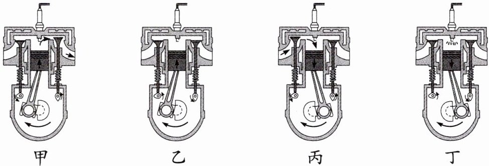 2. 下图为四冲程汽油机工作示意图,按吸气、压缩、做功、排气工作顺序排列正确的是(