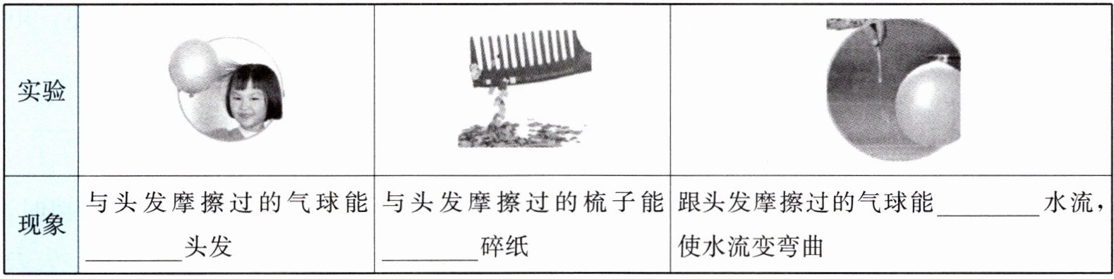 水流,使水流变弯曲|结论:摩擦过的物体能够