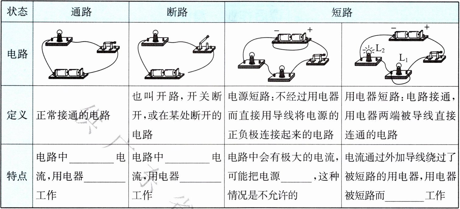 |定义|正常接通的电路|也叫开路,开关断开,或在某处断开的电路|电源短路:不经过用电器而直接用导线将电源的正负极连接起来的电路