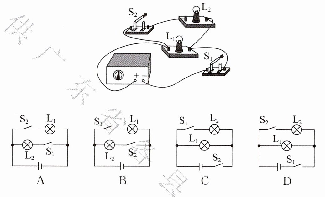 9. 在连接并联电路的实验中,小明用两个不同的小灯泡组成了如图所示的电路。