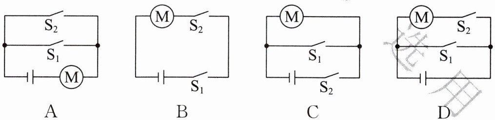 8. 智能快递柜取件时,通过手机扫码使开关$S_1$闭合,也可通过输入密码使开关$S_2$闭合,启动电子锁开锁完成取件,下列能实现以上功能的电路图是(