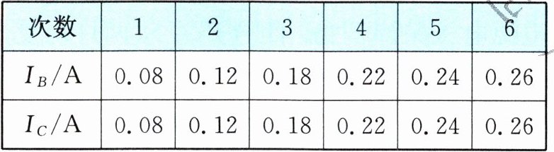 | $I_{B}/A$ | 0.08 | 0.12 | 0.18 | 0.22 | 0.24 | 0.26 |