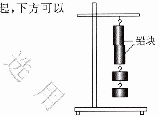 4. 如图所示,将两个表面光滑的铅块相互紧压,它们会粘在一起,下方可以挂起重物。该现象主要说明了(