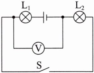 5. 如图所示的电路中,当闭合开关$S$后,电压表测量的是(
