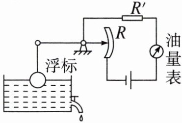 )A.油面下降时,油量表指针向右偏转