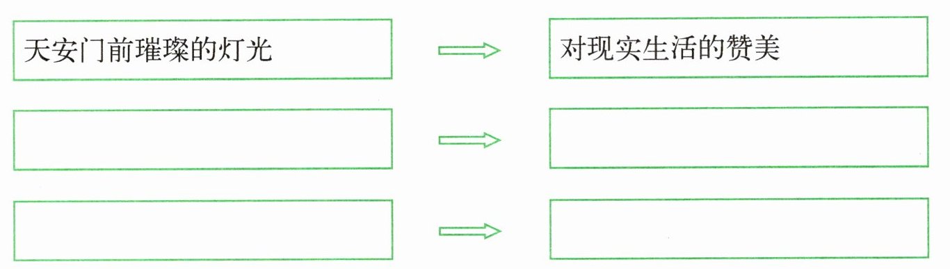 从上到下依次为:书上图画中的灯光、对战斗历史的追溯;郝副营长憧憬的灯光、对未来美好的向往 。