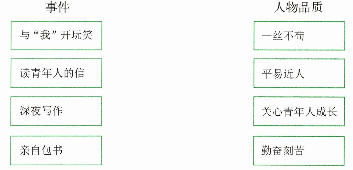 2. 作者善于捕捉鲁迅先生日常生活中的一些琐事,让鲁迅先生的形象生动地呈现在我们的面前。请你连一连,再回到文本中品一品。