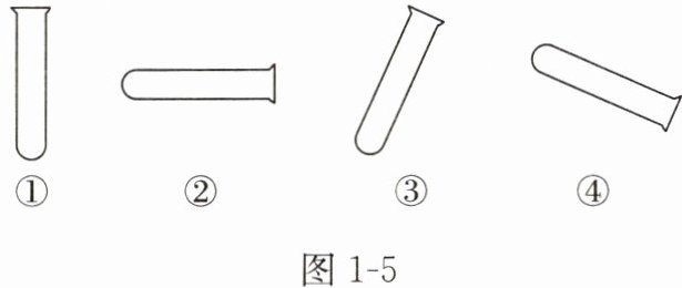 (1)试管是实验室最常用的仪器之一,如图1-5所示,在不同的化学实验中试管口的朝向不同。给试管中的固体加热时,试管口朝向如图
