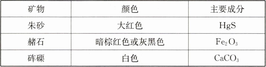 | 赭石 | 暗棕红色或灰黑色 | $Fe_2O_3$ |