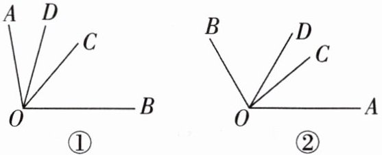7. (1)如图①,OC是∠AOB的平分线,OD平分∠AOC,且∠AOB= 100°,则∠COD的度数为