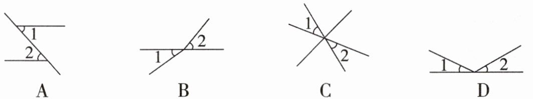 1. 下列各图中,∠1与∠2是对顶角的是(