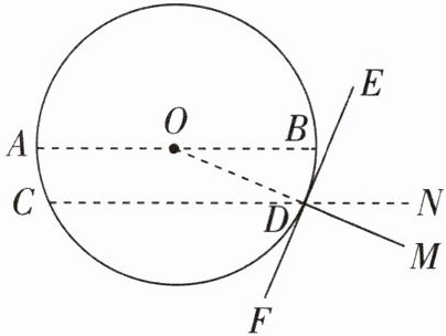 6. 如图是地球截面图,其中AB,CD分别表示赤道和南回归线,冬至正午时,太阳光线直射南回归线(太阳光线MD的延长线经过地心O),此时,太阳光线与地面水平线EF垂直,已知∠MDN= 23°26',则∠EDN的度数是