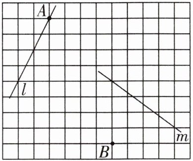 9. 如图,利用网格的特性,过点A作直线l的垂线,过点B作直线m的垂线,并用三角尺或量角器加以检验.