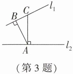 3. 如图,$AB⊥l_{1},AC⊥l_{2}$,垂足分别为B,A,则点A到直线$l_{1}$的距离是线段