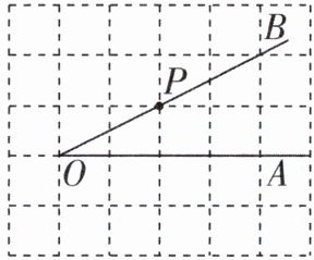 4. 如图,网格线的交点叫格点,格点P是$∠AOB$的边OB上的一点(请利用网格作图,保留作图痕迹).