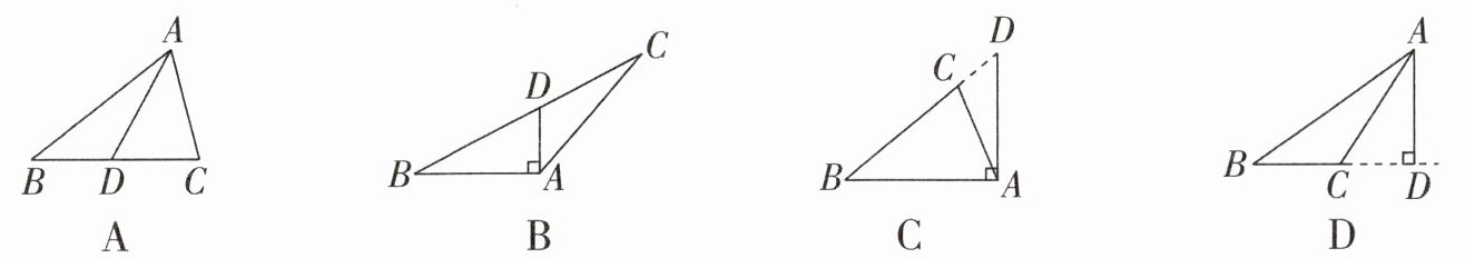 1. 下列图形中,线段AD的长表示点A到直线BC的距离的是(