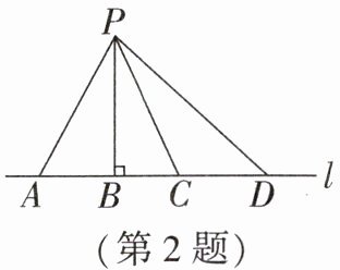2. (常州中考)如图,在线段PA,PB,PC,PD中,长度最小的是(