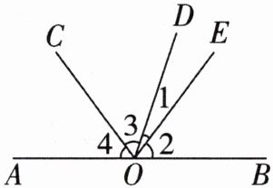 (2)设∠1=x,则∠2=3x,因为 OC 平分∠AOD,∠COE=∠1+∠3=70°,所以∠3=∠4=70°−x.又因为∠1+∠2+∠3+∠4=180°,所以 x+3x+2(70°−x)=180°,解得 x=20°,所以∠2=3∠1=3×20°=60°.