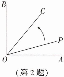 2. 如图,$∠AOB$是直角,$∠AOC= 50^{\circ }$,射线 OP 从边 OA 出发,绕点 O 逆时针旋转直至与边 OB重合,在旋转过程中,下列情形不可能出现的是 (