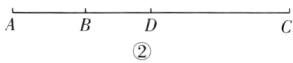 如图②,当点 C 在线段 AB 的延长线上时,因为 AB=7,AC:BC=4:3,所以 AC=28,BC=21.因为点 D 是线段 AC 的中点,所以 CD=$\frac{1}{2}$AC=14,所以 BD=BC−CD=21−14=7.