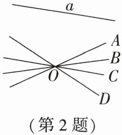 2. 如图,经过直线a外一点O的4条直线中,与直线a相交的直线至少有 (
