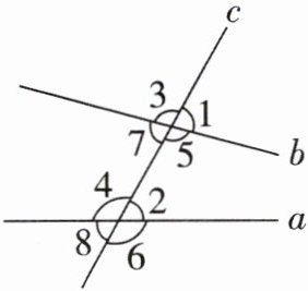 1. 如图,两条直线a,b被第三条直线c所截,形成八个角.具有∠1和
