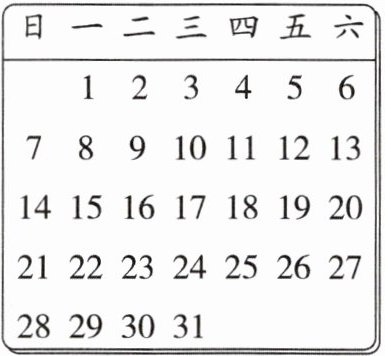 2. 如图是某月的月历,小林该月连续三周周三外出参加比赛,最终获得冠军,且这三天日期之和是51,则小林