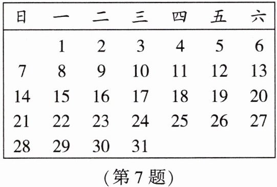 7. 如图是某月的月历,小彬该月外出旅行7天,这7天的日期之和是84,则小彬是