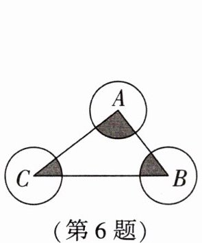 6. 如图,⊙A,⊙B,⊙C两两不相交,且半径都等于2,则图中三个扇形(即阴影部分)的面积之和为