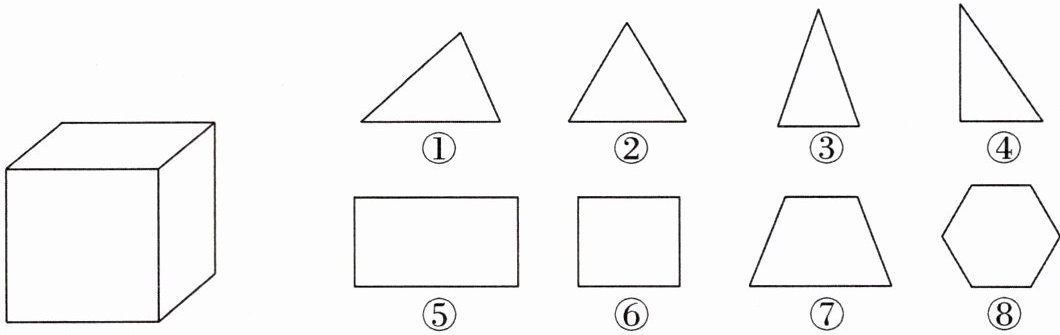 9. (抽象能力·几何直观)请你实践并思考:将正方体用刀切去一块,切面可能是下列哪些图形?