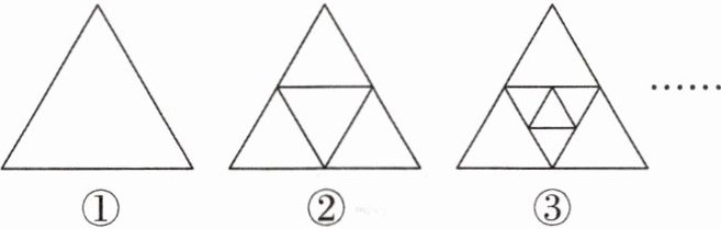 6. (2023·绥化中考改编)在求1+2+3+…+100的值时,发现:1+100= 101,2+99= 101,…,从而得到1+2+3+…+100= 101×50= 5050.按此方法可解决下面问题:图①有1个三角形,记作$a_{1}= 1$;分别连接这个三角形三边中点得到图②,有5个三角形,记作$a_{2}= 5$;再分别连接图②中间的小三角形三边中点得到图③,有9个三角形,记作$a_{3}= 9$;按此方法继续下去,则$a_{1}+a_{2}+a_{3}+…+a_{100}= $