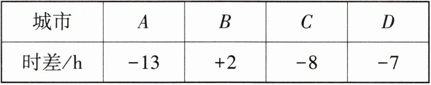 13. 推理能力·应用意识 表格给出的是国外四个城市与北京的时差.(带正号的表示同一时刻比北京时间早的时数,带负号的表示同一时刻比北京时间晚的时数)