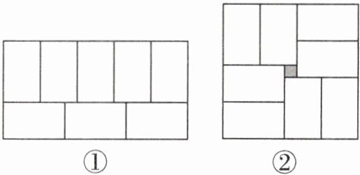 6. 张师傅在铺地砖时发现:用8块大小一样的长方形瓷砖恰好可以拼成一个大的长方形,然后他用这8块瓷砖七拼八凑,又拼出了一个正方形,中间还留下一个边长为3的小正方形(阴影部分),则这些小长方形的长为
