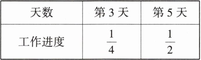6. 甲、乙两人完成一项工作,甲先做了3天,然后乙加入与甲一起做,完成剩下的工作,设工作总量为1,工作进度如表,则完成这项工作共需