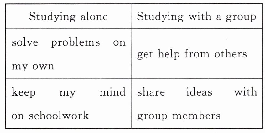As for me, I like studying alone better. Firstly, studying alone helps me learn to solve problems on my own. Most of the time, I need to think hard about them all by myself. So my thinking ability is improved at the same time. Secondly, when I study alone, I can keep my mind on what I'm doing. With a clear head, I am able to finish my homework quickly. In this way, I will gradually develop a good learning habit. I think studying alone is really a good way and it will benefit me a lot in my life.