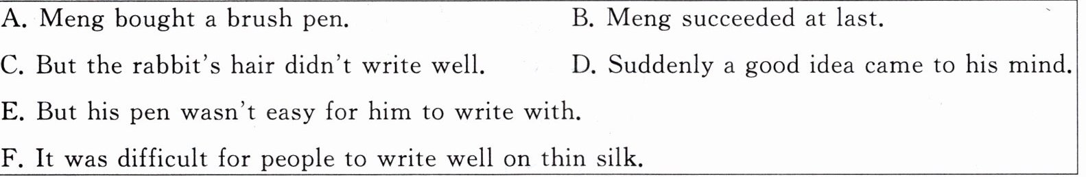 After arriving home,he tied the rabbit's hair to a stick and tried writing with it. 4 Meng was so sad that he threw it away into a stone hole in the yard.