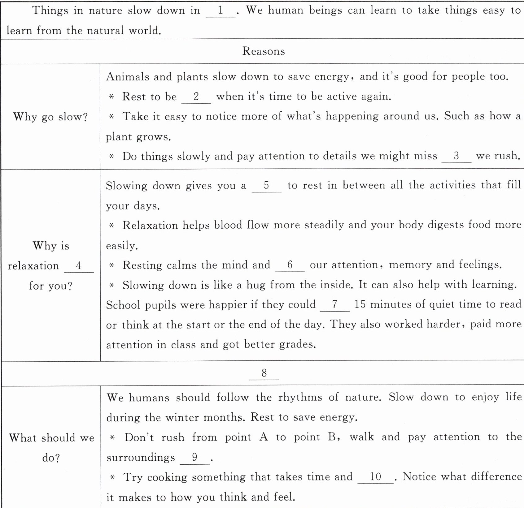 In a word, we humans should follow the rhythms of nature. So, enjoy life in the slow lane(小巷) during the winter months. Resting helps to save energy.
