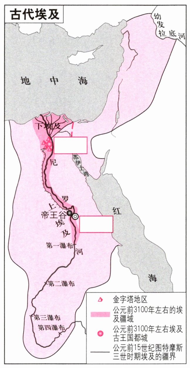 (2)根据地图可知,古埃及疆域最大时曾地跨( )。