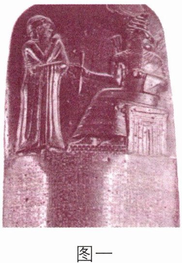 (1)材料一中的图一反映的是世界古代史上的哪部法典?结合图二,这部法典是用什么文字刻写的?