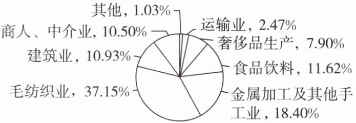 5.下面是中古后期西欧城市布鲁日(在今比利时)职业比重扇形图。据此可知,当时布鲁日( )