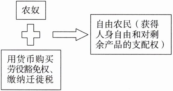 ①庄园劳役量不断增加 ②农奴可以用货币购买劳役豁免权 ③农奴被禁锢在庄园里 ④农奴可通过缴纳迁徙税离开庄园