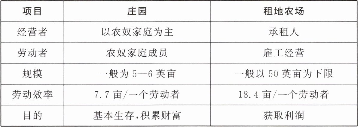 9. 下表表明,与庄园相比,租地农场出现的变化包括( )