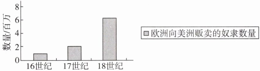 材料二:下面是16—18世纪欧洲向美洲贩卖的奴隶数量示意图。