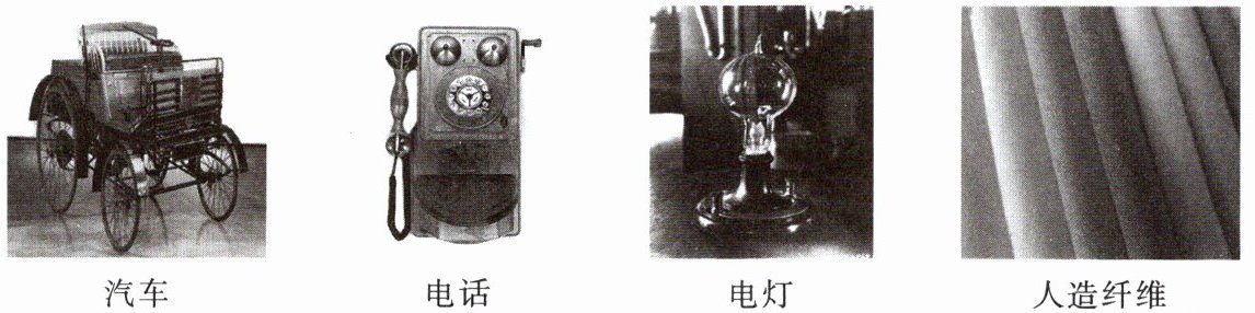 (1)①汽车:汽车的发明和改进,推动了交通运输领域的革命;改变了人们的生产和生活方式,扩大了人们的活动范围,加强了人与人之间的交流;汽车的大量使用,客观上也导致城市交通拥堵、环境污染等问题。